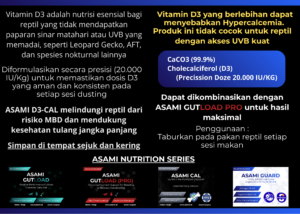 Jangan tunggu sampai tulang reptil Anda melunak! MBD bersifat permanen dan menyakitkan. Berikan perlindungan terbaik dengan Asami Cal sekarang juga.